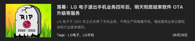 早在 2021 年,LG 就已经关闭了手机业务,也就是硬件层面的停止生产和销售。